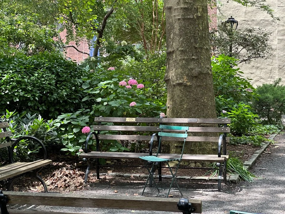 Two elevated green spaces with distinctive period fencing, stone steps, and skyline views. Perfect for establishing shots, walk-and-talk sequences, or any scene needing a controlled outdoor environment in Midtown.